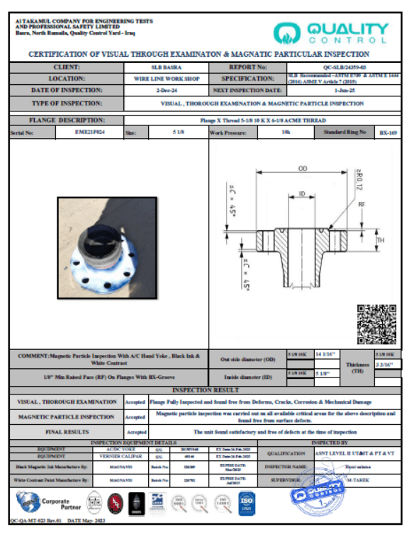 SLB BASRA WIRELINE CERTIFICATE NO QC-SLB-24359-03 DATE OF INSPECTION 02-DEC-2024 DUE DATE 01-JUN-2025